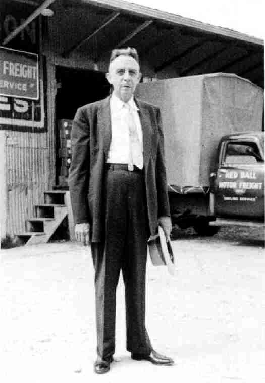 J.O. Crawford was a fixture around Red Ball for many years. His transportation career began in 1906 when he was associated with the Santa Fe Railroad. After thirteen years with the Missouri Kansas and Texas Railroad he joined Red Ball in 1938 as traffic and sales manager. This picture shows Mr. Crawford at an unknown terminal during the early history of the company.