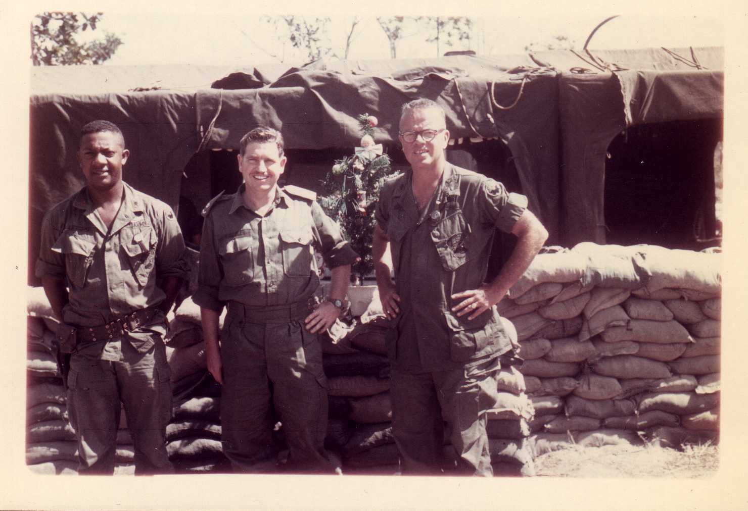 Picture 76 - Left to right: ?, ? - Aussie Officer and Lt. Col. Arthur D. Moreland. If you know the names of the people in this picture contact me. |