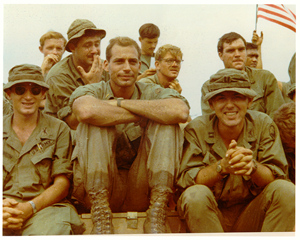 Picture 111 - 1st Row left to right: Lt. Andy Johnson (Bravo 2-6), Lt. Ray Scott (Bravo 1-6), and Cpt. Frank Begovich (Bravo Six) 2nd Row Left to right: ?, ?, Joe Lucas, RTO B-6. If you know the name s anyone in this picture contact me. |