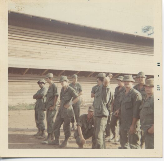 Picture 138 - Tony Planas kneeling, Gene Spafford 2nd from right (KIA Long An Province 11/22/68), Tony Marrone far right. If you know the names of anyone in this picture contact me.