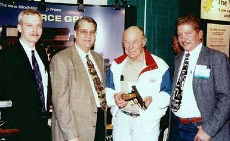 left to right...Thomas R. Graham of Combat Handguns...Lane Pearce, owner of Pearcegrip...General Chuck Yeager, the first man on Earth to break the sound Barrier, and the author, Walton H. Cude