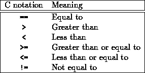C has no special type to represent logical or boolean values. It improvises by using any of the integral types char, int, short, long, unsigned, with a value of 0 representing false and any other value representing true. It is rare for logical values to be stored in variables. They are usually generated as required by comparing two numeric values. This is where the comparison operators are used, to compare two numeric values and produce a logical result.