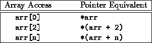 An array is actually a pointer to the 0th element of the array. Dereferencing the array name will give the 0th element. This gives us a range of equivalent notations for array access. In the following examples, arr is an array.