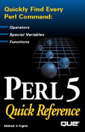 Chapter 1 - Perl Overview Chapter 2 - Special Variables Chapter 3 - Operators Chapter 4 - Not Needed Chapter 5 - Regular Expressions Chapter 6 - Reference Tables Chapter 7 - Glossary
