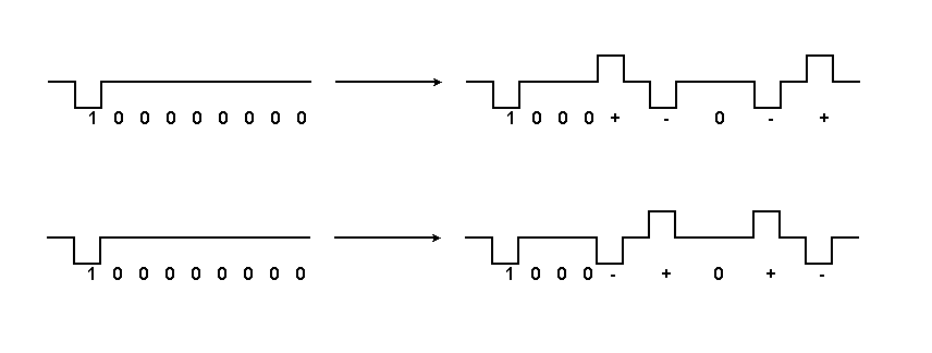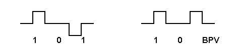 voltage. When 0's are begin sent, both lines are at 0 volts. Since T1 is AMI or alternating, the next 1 will have