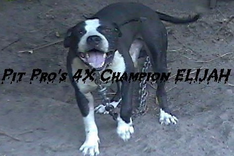 2X Mason T's"Brutus"-----------------------1:06 1X Willie Brown's"Casey"-------------------1:00 Ch.FaceDownKenl."Precherman"-----------45min. (Precher man was stopped @ 45min. D-Game) No Mercy Knls"Bam Bam"----------------2:00 -=NOTES=- Elijah also has 3 more wins off record. Powell's"Elijah has also won the Ch. of the Ch. Cup for confermation. Elijah's owner dose not put his dog into the public's eye AT ALL, yet his name has gone world wide. |