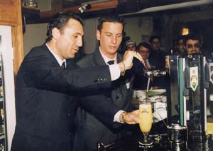 Hristo Stoichkov received a diploma for a waiter,when he was a guest of Kamenitza(a beer production company in Bulgaria)-a general sponsor of Bulgarian national football team.Dimitar Dimitrov and eight national football players were also awarded.Hristo was the last to come to the party and started throwing out jokes, as he came in,with which he maintaied the good mood of the company.Look at the new waiter.