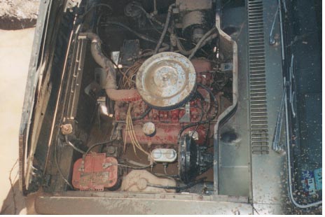 The resultant filth the following day, notice the cool waterline. Brandon not only got water in a few pistons, the new flex-fan acted as a propeller in water. He crimped off the offending lines in the radiator and two bottles of stop leak got us all the way back to College Station. The good ol' boys at Bryan Radiator soldered the holes for 25 bones, not too shabby.