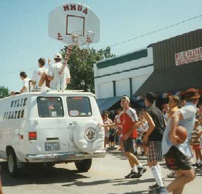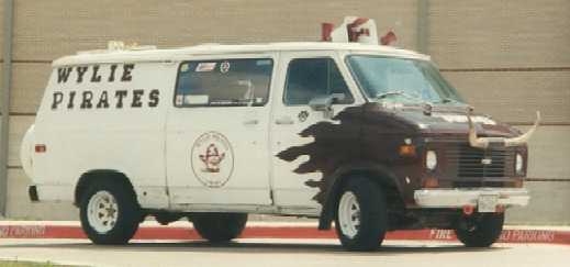 This my friends was by far the coolest thing I ever did in high school. This fine piece of engineering was called "The Machine". Man we had some fun in that bad boy. Incidentally the horns are now sawed off and hanging in my living room. (WHOOP!) We used to load up and go to all the football games, our record was 21 passengers... glory days man, glory days.