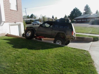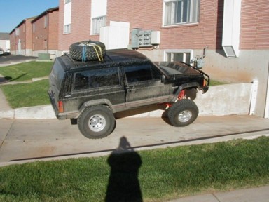 Here are some pics of Ry's new jeep. It has the 8" rock ready and 35's, it is freakin huge. It would flex better than it does in these pics, but the fenders seem to get in the way :)