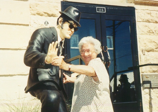 Granny Brune dancing with Elwood, don't think she was drinking, but very funny all the same.