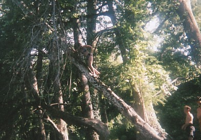 Cynthia getting ready to step out and cussing Amy for not doing it with her. (the rope swing)