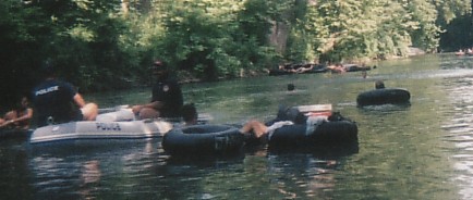 Crazy Luke decided we should go toobin' so we did. The weekend couldn't have been more fun. Beer, the guadalupe, girls, and toobs who could ask for anything more? We stayed at Cynthia's Granny's lake house (thanks Cynthia) It was very 70-licious, and was everything we needed including a bitchin' stereo system and tv that almost got reception. I haven't laughed so hard in a long time. Here are the pics of Amy, Cynthia, Crazy Luke, Clint, Dylan, Bobby, and I floating and drinking.