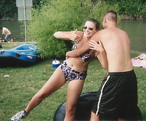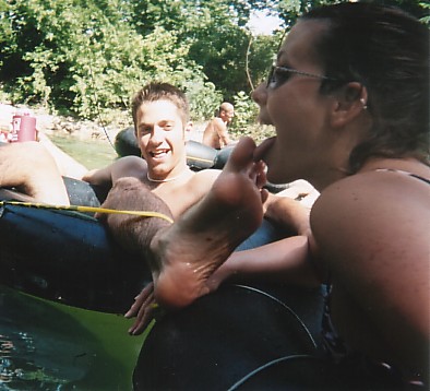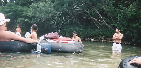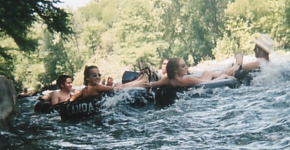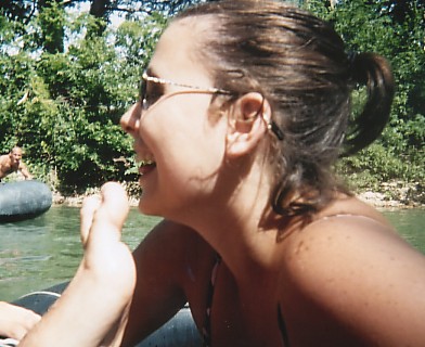 This is the point where the trip got interesting. As you will be able to tell in the following pictures C. got quite drunk. So these girls floated beside us with breasts the size of cantaloupes but twice as round. Anyone on the river could tell that these girls were able to deduct these implants because they were a job related expense. Well Cynthia proceeded to yell "Hey Strippers" and for some reason they were offended by this. So they came back to have a few choice words with her. Justin headed for calmer water and left us there to defend C. from the surgically altered freak shows. They told her that she had bought her swimsuit from wal-mart and that Cynthia was white trash, and that Luke should hit the gym (oh a gym!!!) It was extremely funny and for the next 20 minutes Cynthia explained to us that she bought her swimsuit for $80 from J. Crew and that both her parents had theirs masters and that she would soon have hers, and that she was not white trash. The funniest part is that the working girls never said that they weren't strippers, just that Cynthia shouldn't have said that...