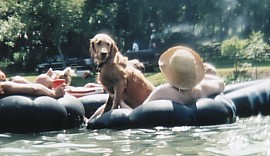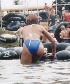 Soon after the rapids we ran into this young lady. She was toobing along minding her own business when a vortex must have sucked off her entire bathing suit. She made the best of it though and toobed the next 200 or so yards nekkid.
