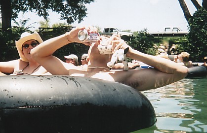 This toobin trip was pretty exciting. This time we traded Amy, Dylan, and Bobby for Justin, Leighann, and Regan. Clint, Luke, Cynthia and I were also along for the ride. the trip started a lot tlike the time before, BBQ at Granzin and then a trip to the Mexican supermarket to emancipate another animal from the skill crane and get toobin supplies. We then set out for Gruene with toobs and beer in hand. We had a great time as the following pictures will clearly illustrate. Some may not be suitable for younger viewers...