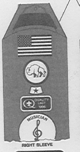 Temporary Insignia: ONE temporary patch or a temporary patch with segmented patches not to exceed the dimensions of the right pocket are to be worn on the field uniform. Patches suspended from the right pocket button are considered as "sewn on" for proper uniforming. "Temporary insignia" is defined by the BSA as special insignia for participating in unit, District, Council or national events or programs. Previous rank, service stars and pins are NOT to be worn on the pocket.