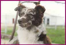 Lena is a red merle with copper and white, she will head and heel. She is a close worker that has helped me in many a jam. Her main purpose is to please me in every way. She enjoys playing fetch in or out of the water. She has been known to take toys away from younger siblings just to get them to play with her. Lena is protective of her home, truck,crate, and family. She makes a great pillow in front of the TV unless you forget to keep scratching her belly, then she wiggles. Lena has been breed once and is now spayed. I spay my females at 7 years of age. Her pups went to working homes too. She was bred to HOF WTCH Deharo's 2-Bits. All pups in this litter were neutered. They are great workers / ranch dogs but had a tendency to be to protective and some were afraid of thunder. No physical problems. All love the families that they are in. |