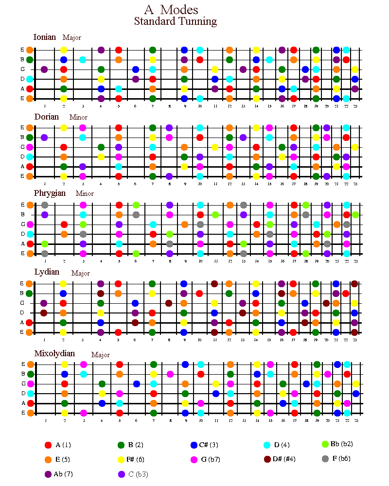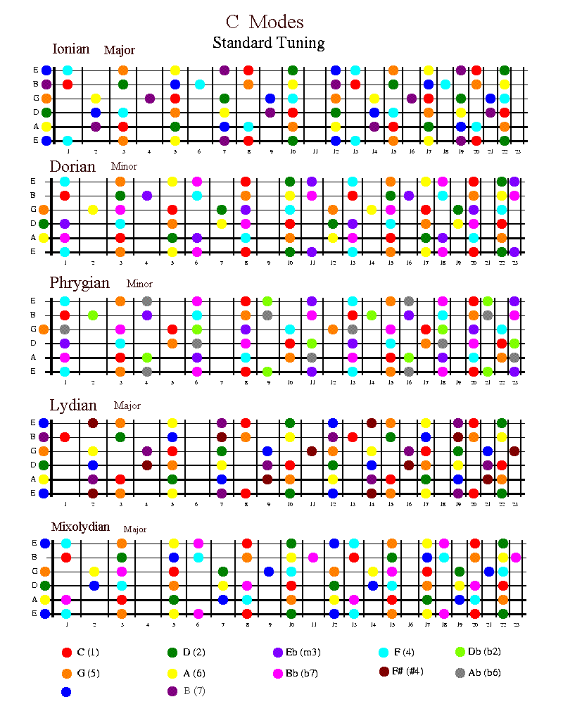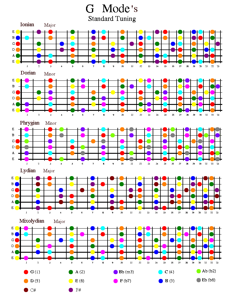 the modes to use with them and many of the chords which