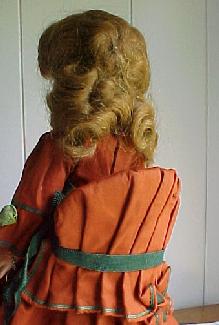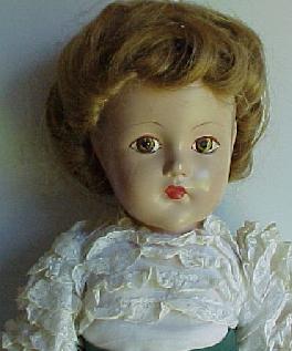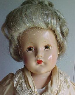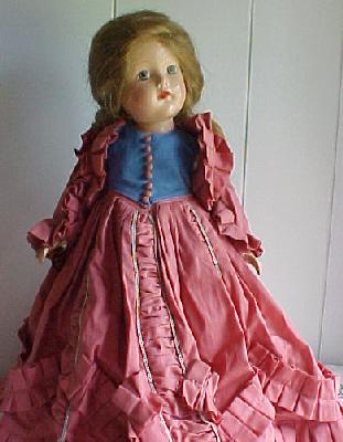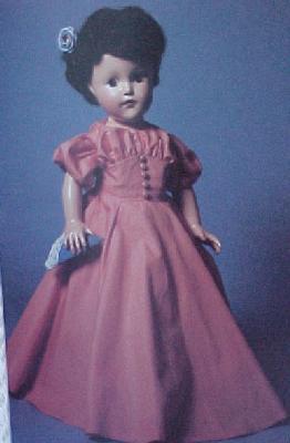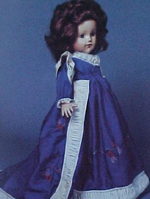 And finally, the doll entitled simply "1939 TODAY'. She is wearing a doll sized version of Chanel's Gypsy dress. It has the influence of the Carmen period of Spain. The Gypsy skirts were long and full and the blouses had full sleeves. (this doll should be wearing a full lavendar skirt with a olive green wide sash. All she had when I got her was her slip and blouse and I have not found the slightly ribbed purple toned fabric to make her a replacement)