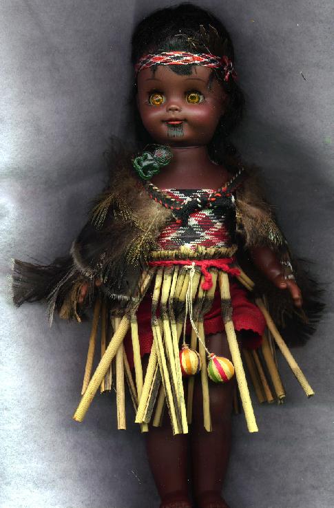On the other end of the spectrum we have a lithographed paper doll by Llittauer and Bauer circa 1880. There are reproductions made by Shackman, but this is the real McCoy. My/nurse_edna's New Zealand Maori doll (I love the feather cape!) is 14".