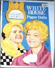Whitman's 1973 Bridal Fashions is very unusual. It contains a record that plays music and a bridal fashion show commentary along with a stage for added play value. In Artcrafts 1974 White House we see a great likeness to Pat and Tricia Nixon though their names are not mentioned.