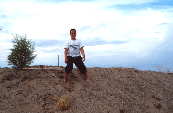 John runs barefoot on his first sand dune. (He fell and slid all the way down!)