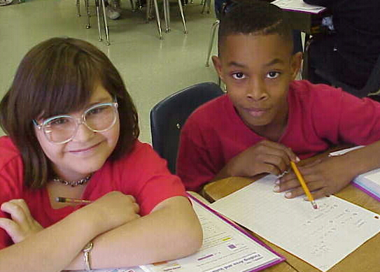 Shedrick, Melody and Cameron practice their multiplication skills.