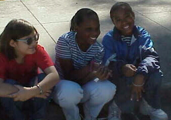 Melody, Chantal and Daphne enjoy some sunshine outside.
