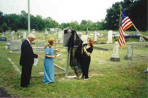 On 21 May, 2000, the Naples cemetery was dedicated with an historical marker as a result of research done by Glenda Brown Scarborough, right. Dedication speech was given by Bill Henderson and assisting with the unveiling is Jeanette Graham, President of the Morris County Historical Society.