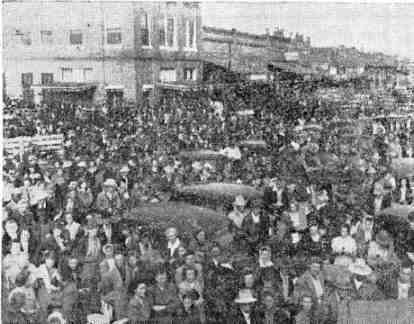 This photo was taken circa 1947 during a Saturday afternoon Trades Day event. The drawing was a big to-do in those days. Notice the old Morris County Bank building in the background. Mrs Annie Stewart and her telephone office was located in the near upstairs corner.