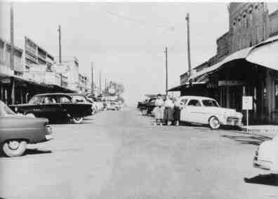 This photo was taken about 1955 looking east along mainstreet. The three girls on the right are Claudette, Sara, and Tack. The black '52 Ford on the left I will bet belonged to Robert Hammonds.