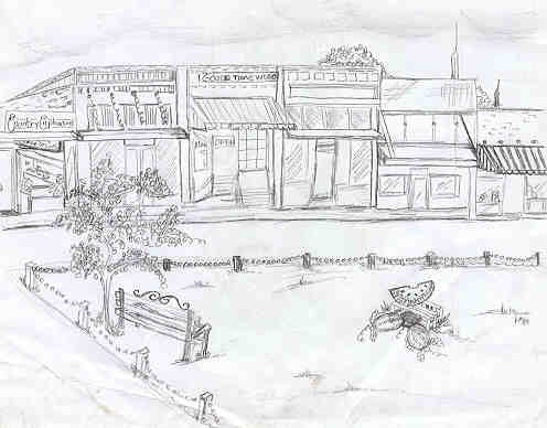 This is a drawing made by Ms LeeAnn Motley of downtown Naples and the Centennial Park. I was impressed with the drawing and used it for a while as the border on the first page of this web site....where all the signs are now. I am tempted to put it back.