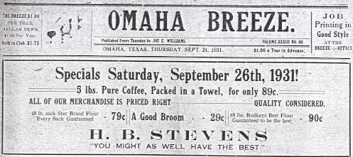 As a note, the last basketball game of the Omaha School was played against Avinger and the score was 17-16 in favor of Omaha.