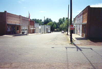 This is a newspaper photo taken in the 1920's atop the Omaha hill looking eastward. On the left is the Omaha State Bank, in the center is the Omaha Mercantile Company and on the right is the Connor-Coleman Texaco Service Station. The automobile on the extreme right is a 1927 Ford Touring Sedan and there were no foot pedals. Everything was operated by levers.