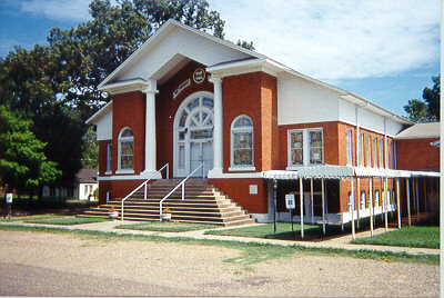 "Today the Concord Meeting House and Cemetery is a landmark which is of both historical and cultural significance to Morris County and the adjoining area. Unfortunately most of the early records of the organization of the church at Concord have been lost. It is believed that the first meeting house was a log cabin located just north of the present site. The present building was built around 1860 and remodeled in 1920. Original materials were used wherever possible. This area of Morris County was first settled by John V. and Nancy P. Cherry in the 1830's. Mr. Cherry served in the Texas War for Independence and in 1838 traveled from his home to Nacogdoches where he served the Republic of Texas as "interpreter to the Indians". In 1843 Mr. Cherry was elected pastor of the Baptist Church of Bethlehem which met in the homes of the members and in schools in the present Morris County. In 1846 Major John Pollard Gaines of the 1st Regiment, Kentucky Volunteer Cavalry marched through this area and recorded in his diary "...traveled 18 miles and camped at Cherry's apparently a clever man and a Baptist preacher, the first divine I have seen in Texas and the second since I left Memphis..." The camp of Major Gaines was located in the vicinity of the present Concord community. Boston, Daingerfield, and Clarksville were the only towns; Mt. Pleasant and Gilmer were in the process of being laid out as the county seats of Titus and Upshur Counties. An occasional Indian was seen in the forests along Boggy, Swanane, Sulphur and Cypress. There were few cleared fields in cultivation and the homes of the pioneers were very scattered. During the next ten years settlers from east of the Mississippi moved into the area and the forests began to disappear into orderly cultivated fields of cotton, corn, wheat and oats. A college and boarding school and a factory for the production of corn mills and cotton gins located in Daingerfield. A stage coach line began regular runs from Jefferson to Clarksville through Daingerfield and Mt. Pleasant. The distance travelled necessitated many intermediate stops and the town of Snow Hill, Titus County was designated one of these stops. Several miles north of Snow Hill construction started on a frame meeting house to be called Concord. Britton Coffey, who is buried in Concord Cemetery, donated land for the meeting house and adjoining cemetery. (The Coffey family was among the first settlers of Morris County. They are identified with the churches at New Hope near the [former] Hospital in the Pines and with Spring Hill, as well as Concord.) Residents of the area built the meeting house of local materials--perhaps the logs were cut on site and hauled by oxen to the nearest sawmill at Snow Hill where the logs were sawed into rough lumber and planed by hand. Again the finished lumber was hauled to the site of the meeting house and a building was erected. Benches and tables were also built for the meeting house was to serve as a school as well as a church. It is thought that the first sermon preached in the Concord Meeting House was by the Rev. C.D. Myers in 1857. At this time, Morris, Titus, and Fannin Counties were all Titus County, and the total population was less than 10,000 people. Meeting houses were used by all denominations and were called Union Churches for preachers were scarce and the people desired the Word of God from any who preached. Then came the period of the War between the States and Reconstruction. Ten per cent or more of the total population of Titus County enlisted in the army of the Confederate States of America. The entire county was desolate of young men; farming operations began to change from cotton to corn, wheat and oats which were shared with families fleeing from the war torn states east of the Mississippi River. The Confederacy enacted tax in kind laws where a tithe of all farm produce, cattle and livestock was collected for the war effort; prices soared and excess food, cloth and transportation were not to be found in the county. Each mail brought news of war casualties to the community and finally in April, 1865 came the news of the surrender at Appamatox. Many of the original families of the community moved West to begin a new life and from the Eastern States came another generation of pioneers into the area. With Reconstruction came military occupation--local elected officials were deposed from office. In 1868 first a Sergeant and then a Corporal of the US Army was appointed Sheriff of Titus County. With military occupation came lawlessness and corruption but still the Meeting House at Concord stood-a landmark for that which is good and right. In the Snow Hill community an ex-soldier of the Confederacy, Solomon Hayes Price, was converted from a fighting, drinking man to a militant soldier of the cross. Four years later, in 1874 Sol Price was ordained a minister by the Concord Church. From all that has been said and written about Soloman Hayes Price, he must have been a wonderful man. At the time of his conversion he could neither read nor write, but with the help of his wife and with the Bible as a tool, he became one of the best known and well liked preachers of this area. He served the Concord Church as pastor from 1874 until 1913. During his 47 years in the pulpit he served as pastor of 15 other churches. A few days before his 82nd birthday and six weeks prior to his death in November, 1921, Price preached the Introductory Sermon for the Hopewell Association in session at Nevil's Chapel. Morris County was created from the County of Titus in the Spring of 1875. The newly created county was divided into voting precincts and the several voting places of the county were designated. The voting places designated were: "...East of the Sedicum Line--at C.P. Forsythe's store and West of the Sedicum Line--Concord Meeting House..." The Concord Meeting House served the area as a school, music school, voting place, community center, and place of worship. In 1919