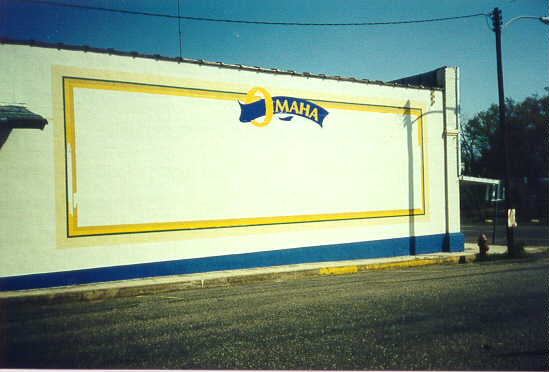 March 7, 2000------I drove through Omaha today taking photographs and noticed a sign or mural being painted on the side of Duncan's Furniture Store. All that had been painted so far
