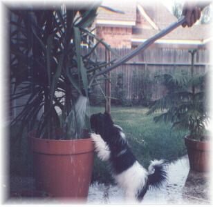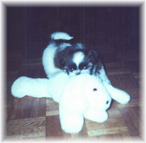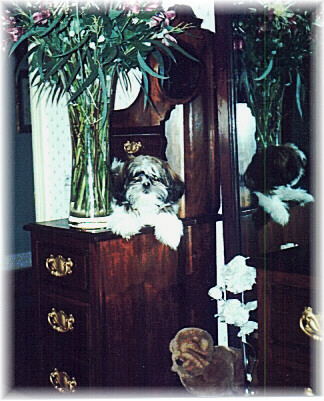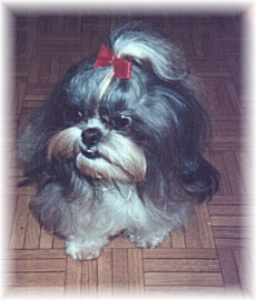 She will run in zig-zags --- pushing the ball down field -- moves and controls the ball with precision,and a team player just like the pro's --- and scores a goal, and then returns the ball to center.Betsy... the protector: Princess Betsy of the backyard and home ! And, is most devoted to her Peggy, keeps guard vigilantly. Once, a raccoon came into the house through the "doggie door" -- Oops.. big mistake ! Betsy is a Shih Tzu hunting lioness - - she cornered that ole' raccoon "clinging to the ceiling fixture for dear life" -- Betsy barking, and barking, waited patiently. --After a while, the raccoon lost it's grip and fell to the floor, playing possum. That was not the end of this story --Betsy dragged that raccoon out the "doggie door" by it's tail and escorted him out of the yard !