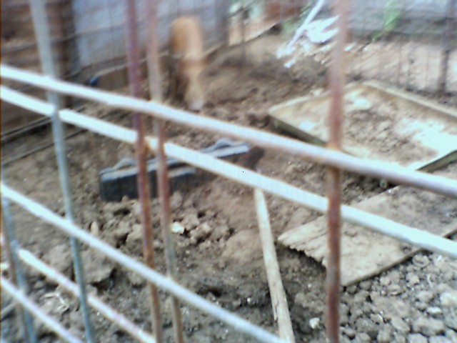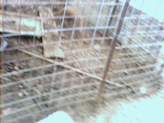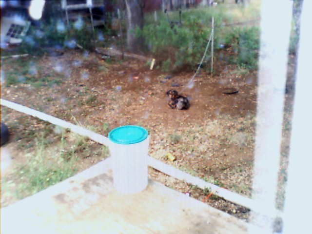 this one is shot from inside lookin at dog after he had to be chained up for chasin chickes