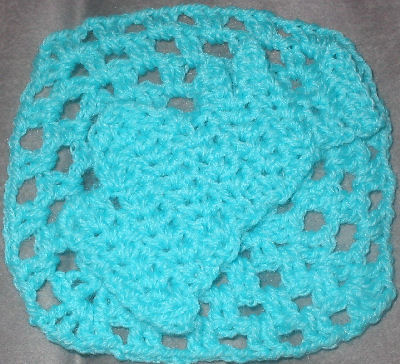 Note: Once again, gauge is unimportant, since the square can be made with any combination of hook & yarn. For reference, this finished square measures approximately 4 inches on each side.