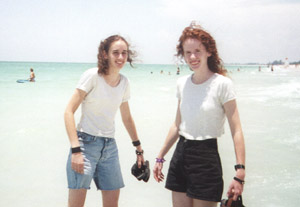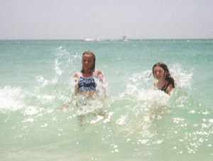 Well here's Glitzy and M-way, after we finally got Glitz to go in, getting klobered (ummm, how the hell do you SPELL that anyway??) by the waves. Aren't they cute? Hehe!