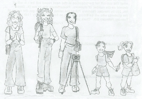 And here's the drawing I did of all of us in our pony forms! Left to right: Glitzy (galloping off at the speed of light to the next crazy ride), EDP (happily trotting off after Glitzy), Moonbug (taking piccies with her camera as we go--this was also my first attempt at drawing a flutter, so disregard the retarded-looking wings she has), Me and Milkyway (dizzy and nauseous from all the rides...lol!).