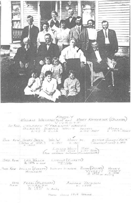 William Washington Vivrett was born June 19, 1861, in Desoto, Missouri. He died February 23, 1931. He married Mary Catherine Coleman(1861-1923) and had the following children: