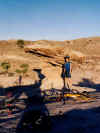 We started early in the morning (6AM) to beat the heat. About three hours into the ride, we sped down a rocky hill where a rock attacked my bike. Luckily, I escaped with only scrapes, bruises and a sprained wrist; unfortunately, I had to walk the rest of the way.