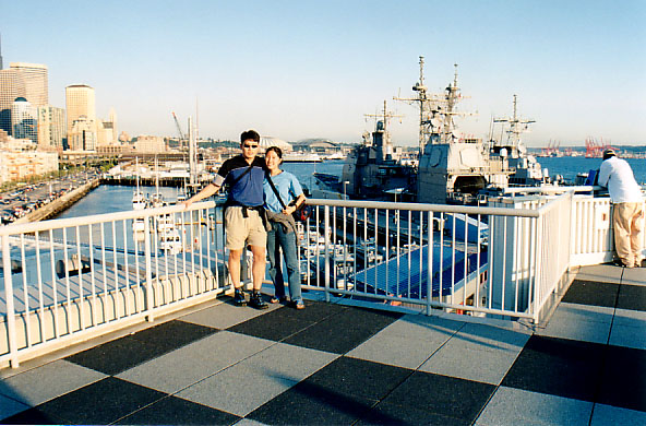 Downtown Seattle in front of a docked naval ship. If you look closely, you can see Johnny's fear-of-heights grimace.