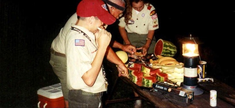 Mr. Schreiber and Linda Cut Watermelon