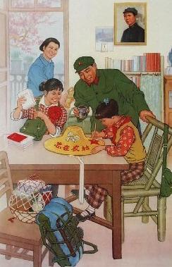 Here we have a heart-warming home scene. Notice the Mao picture on wall? See how the eyes always seem to follow you no matter which part of the room you're in? In no time this comrades children will be turning Mom and Dad into the Thought Police...