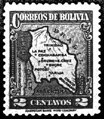 ______The dispute heated up considerably when Bolivia issued a stamp featuring a map of Bolivia... a map that included the Gran Chaco, now marked as Chaco Boliviano. Paraguay didn't take this sitting down, and soon issued even bigger stamps than Bolivia, with an even bigger map of the Gran Chaco, but this time marked as Chaco Paraguayo.