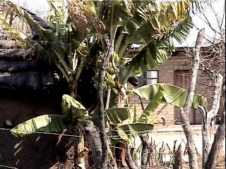 A banana tree growing in the village.