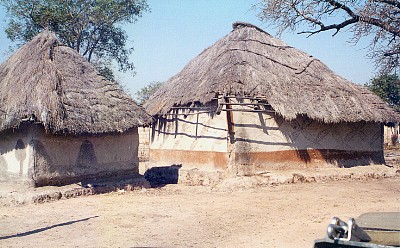 Thatched roof huts in the village.